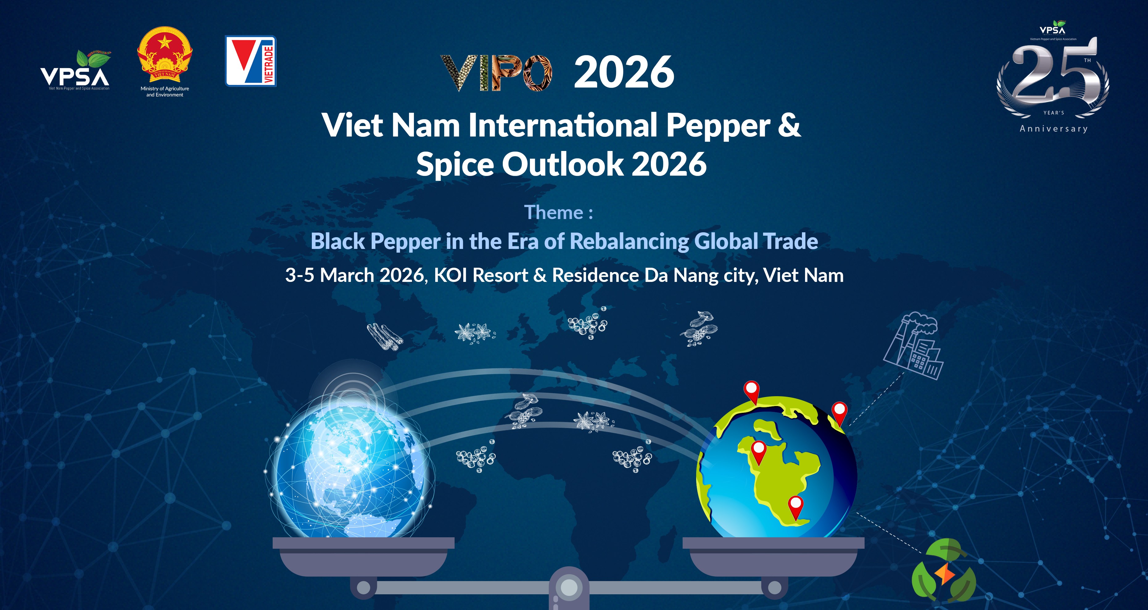 The Vietnam Pepper and Spice Association (VPSA) proudly presents the Vietnam International Pepper and Spice Outlook 2025 (VIPO 2025) from March 3rd to 5th, 2025 at Rex Sai Gon Hotel, Ho Chi Minh City. This year’s conference comes at a pivotal moment for the global spice industry as we witness a resurgence in prices, fueled not only by growing consumer demand but by the reduction of global spice production and also the return of speculative interest. In 2024, black pepper reached historic heights, entering the billion-dollar export club in Vietnam, a milestone for growers and traders alike.